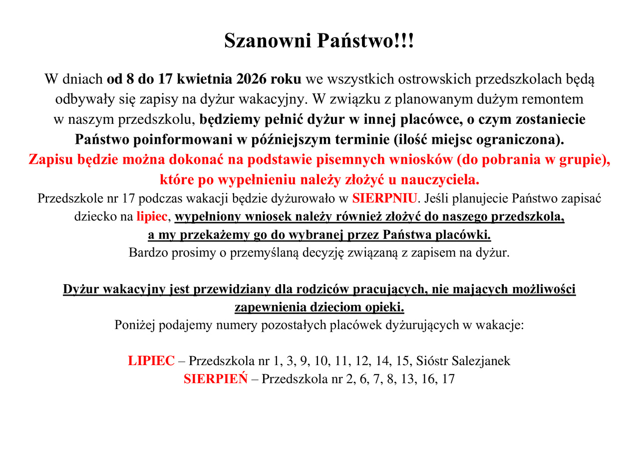 DYŻUR WAKACYJNY